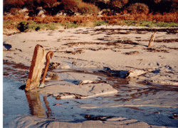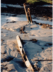 Out of the total number of crew, military guard and internees who left Liverpool on 1 July 1940, almost half were lost, presumed drowned. The total figure includes Captain E.W. Moulton and 12 officers together with 45 of the officers and crew, 94 of the military guard, 470 Italian and 243 German nationals. During the weeks and months which followed the sinking, bodies were found in the coastal waters and washed up along the shoreline around the western seaboard of Ireland and the Scottish mainland as well as the islands of the Inner and Outer Hebrides . Whilst only a few of the victims could be identified, the finding of lifejackets and even lifeboats bearing the name of the ship gave clues as to the nature and scale of the tragedy. One such life boat was found on the island of Mull where it was visited in 1995 by Margaret Jack of Oban who kindly allowed us to use her photographs.