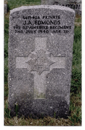 Private 5619428 J.A Edmonds, of the Devonshire Regiment who died on 2 July 1940 age 30. Jack Alva Edmonds was born on 16 August 1909 in the district of Llandaff in Cardiff , South Wales.