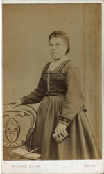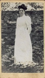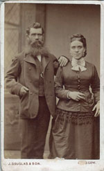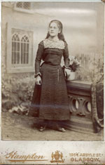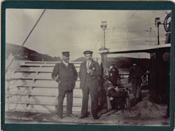 The photographs on this page are not, as yet, identified, but at least two of them (2nd and 14th, young girl and gent with full beard) also appear in the collection of the late Susan Carruthers McNeill. As a working hypothesis, the common denominator is a McNeill connection across Scotland, Antrim and Canada. It is very likely that some of the subjects are related to the extended family of Sir John Carstairs McNeill V.C. The fishing boat is off Scalasaig, Colonsay, and it is possible that the paddle steamer is at Colonsay too, with the Manse and High Tor in the background. The lady in the white dress might well be somewhere in Kiloran, judging by the distinctive wall in the background.